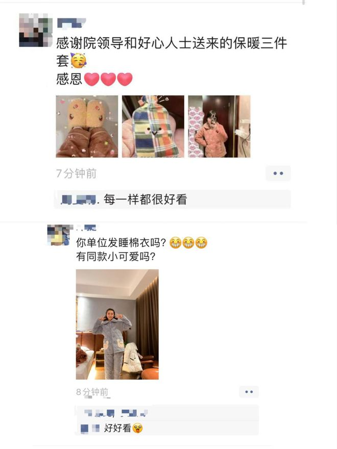 抗疫一线的医务人员收到物资后倍感温馨,一时间在朋友圈刮起了一阵别样的睡衣“时装秀”。大家纷纷表示:感谢广大爱心企业、爱心人士及医院领导给予的关爱,让我们“今晚不再寒冷”,温暖的衣服正如雪中送炭!同时对爱心企业的暖心之举表示由衷的感激!