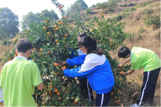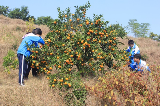 在听取指导老师的具体要求后,同学们3到5人一组开始了采摘,随着一阵阵剪刀轻响,一颗颗金黄的柑橘采摘而下。几位颇有经验的同学还化身“老师傅”,向其他人传授采橘技巧。随着时间推移,同学们的分工越来越明确,配合也越来越默契,俨然成为了一群“专业橘农”。在这场活动中,同学们挥洒了劳动的汗水,体验了收获的快乐,品悟了协同合作的内涵。