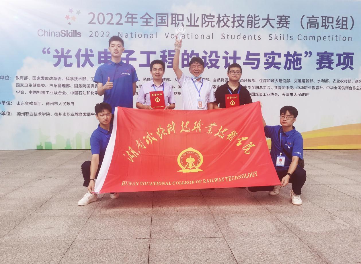 8月21日至24日,2022年全国职业院校技能大赛(高职组)“光伏电子工程的设计与实施”赛项在山东德州举行。湖南铁路科技职业技术学院由周湘杰、王文楷老师指导的参赛团队,以第二名的成绩获得了全国一等奖。