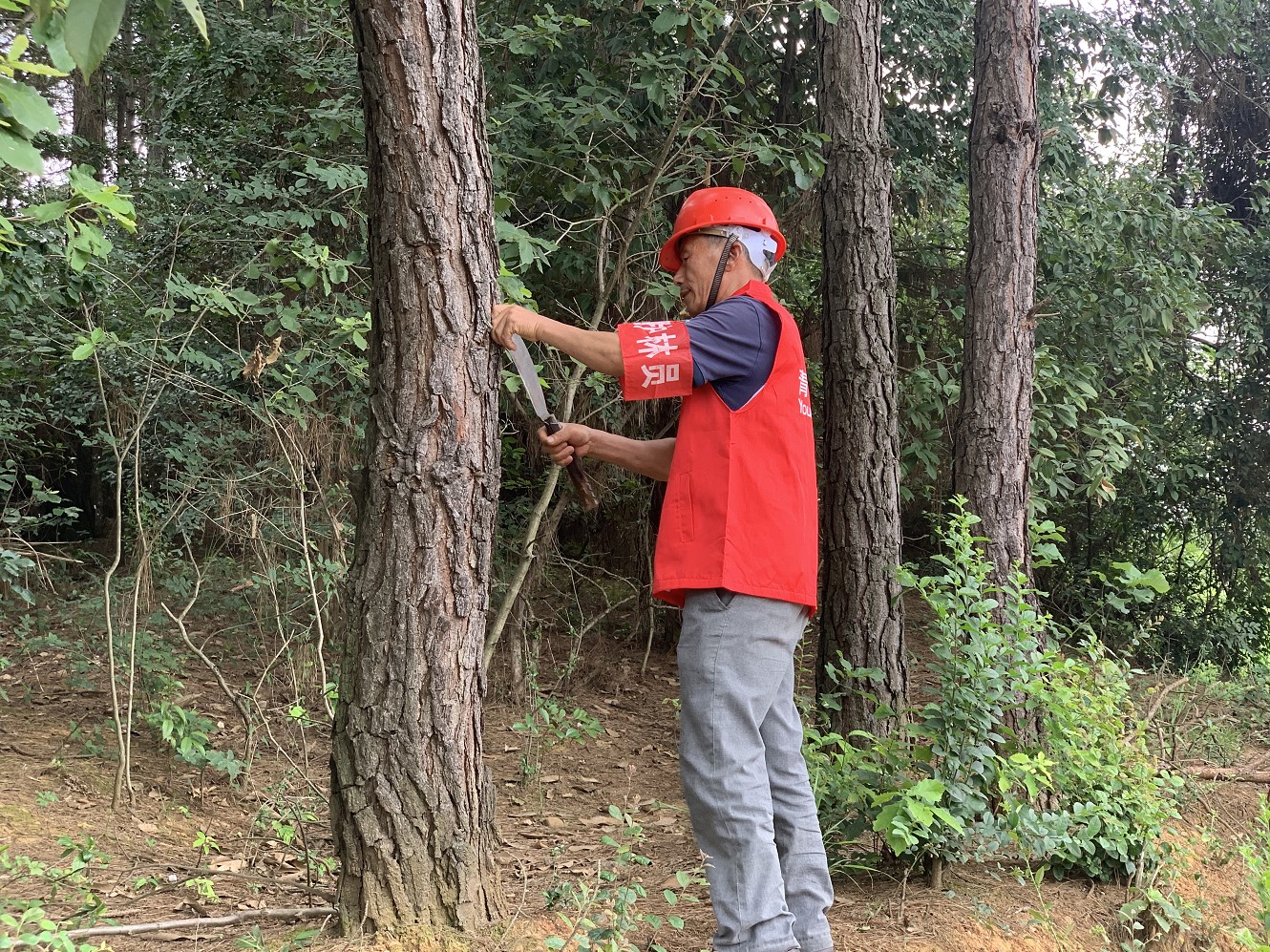 董振华负责盘龙桥居委会7000多亩的山林巡查。他每月巡查20多次,无论晴天雨天,无论天热天寒,他都骑上他的小摩托,穿上他的巡查服,从李家湾、禾生湾……一直到康王堉,年复一年日复一日,青山为伴、林海穿梭,捍卫绿色家园。