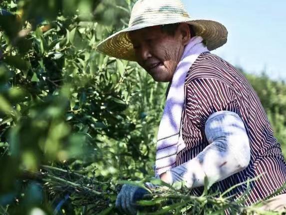 7月14日,在澧县王家厂镇长乐村油茶种植基地里,工人们正在给油茶除草、剪枝等,现场呈现一片忙碌景象。